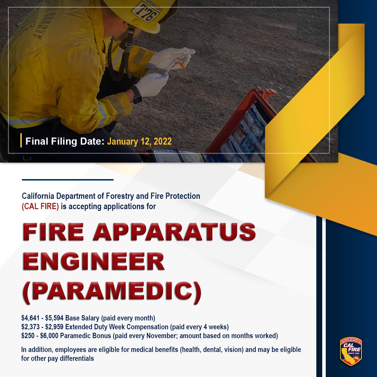 Cal Fire Careers On Twitter Got What It Takes To Be A Fire Apparatus Engineer Paramedic With Cal Fire We Are Looking To Fill Multiple Vacancies Until January 12 2022 Tau Applicants Are